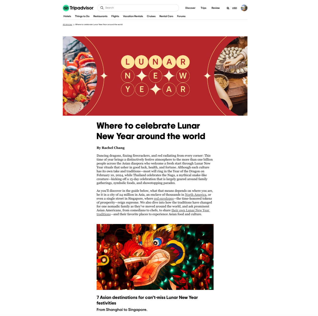 This package was inspired by my time living in Asia. Typically, holiday content for Western audiences is centered around Judeo-Christian celebrations, but Lunar New Year is the most traveled holiday in the world. I oversaw production from pitch to publication, onboarding and assigning writers, managing timelines and edits, working with our art department to solidify a visual identity, and even building each story in our CMS.